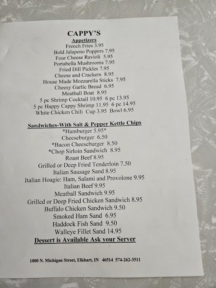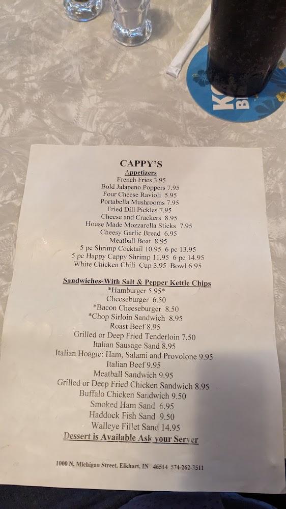 Welcome to Cappy's Northside Bar and Grill, a cherished Italian-American restaurant serving the Elkhart community since 1945. Dive into our mouthwatering menu featuring smashed burgers, hand-battered Happy Cappy Shrimp, savory top-sirloin steak, and delightful pasta dishes. Whether you're in the mood for a quick bite or a sit-down meal, we offer both takeout and dine-in options, complete with a wide selection of cocktails, beers, and local specialties. With accessible facilities and a vibrant atmosphere perfect for lunch or dinner, Cappy's is your go-to spot for delicious comfort food and great company. Join us and continue the tradition!