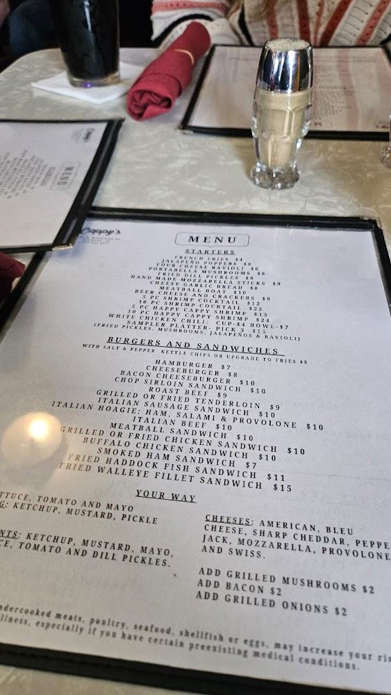 Cappy's menu is a delightful blend of Italian-American dishes. Guests can choose from burgers, sandwiches, salads, and pastas. Specialty items like the Italian sausage sandwich and chicken sandwich have created loyal fans.